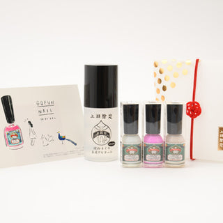 • 容量: 胡粉ネイル3本、専用除去液1本、ネイルシール1枚、オリジナルギフトボックス(梅ゴム、グリーティングカードつき)
