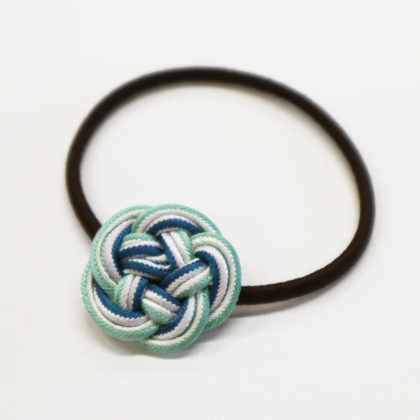 京都の組紐専門店「昇苑くみひも」とのコラボレーションで作った限定デザインのヘアゴムです。祇園祭で上羽絵惣のお隣に建つ「保昌山(ほうしょうやま)」の縁結びにちなみ、梅の花をモチーフにみなさまの良縁を願って作りました。