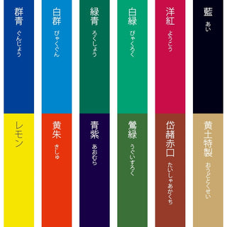 群青/白群/緑青/白緑/洋紅/藍/レモン/黄朱/青紫/鶯緑/岱赭赤口/黄土特製