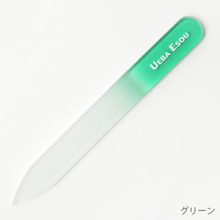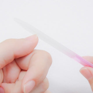 爪の形を綺麗に整えるのに最適なガラス製の爪やすり。水洗いできて衛生的で、繰り返し使えます。ポーチなどに入れやすい大きさです。